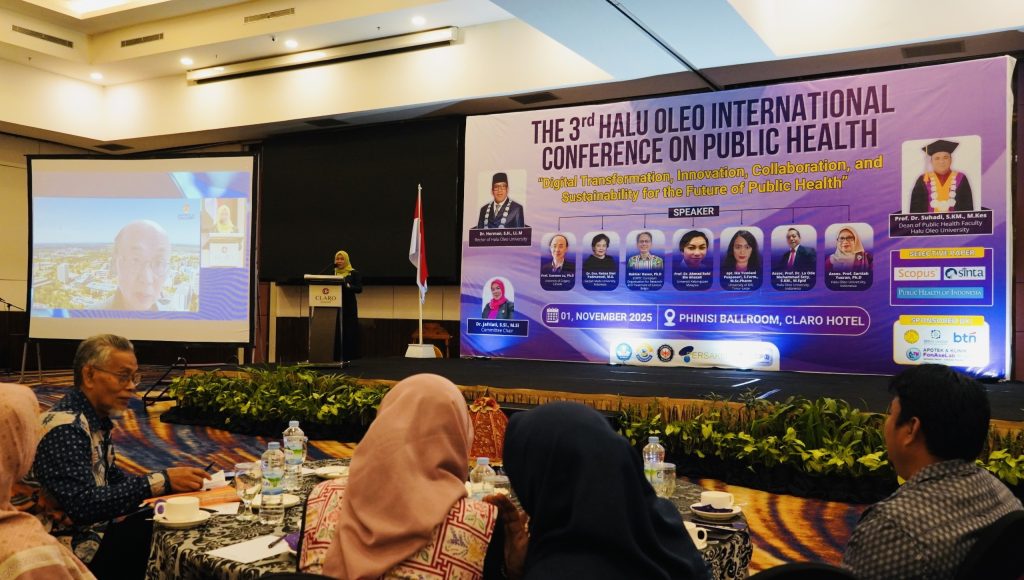 Pembukaan The 3rd Halu Oleo International Conference on Public Health (HOICPH) secara resmi oleh Pelaksana Tugas (Plt) Rektor Universitas Halu Oleo (UHO) yang diwakili oleh Kepala Lembaga Pengembangan Pembelajaran dan Penjaminan Mutu Pendidikan (LPMPP), Prof. Dr. Eng. I Nyoman Sudiana, M.Si. BritaTop.Com, KENDARI – Fakultas Kesehatan Masyarakat (FKM) Universitas Halu Oleo (UHO) kembali menunjukkan kiprahnya di kancah akademik internasional dengan menggelar The 3rd Halu Oleo International Conference on Public Health (HOICPH) bertema “Digital Transformation, Innovation, Collaboration, and Sustainability for The Future of Public Health”, di Claro Hotel Kendari, Sabtu (1/11).