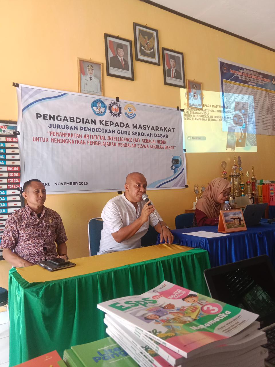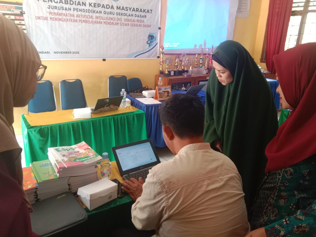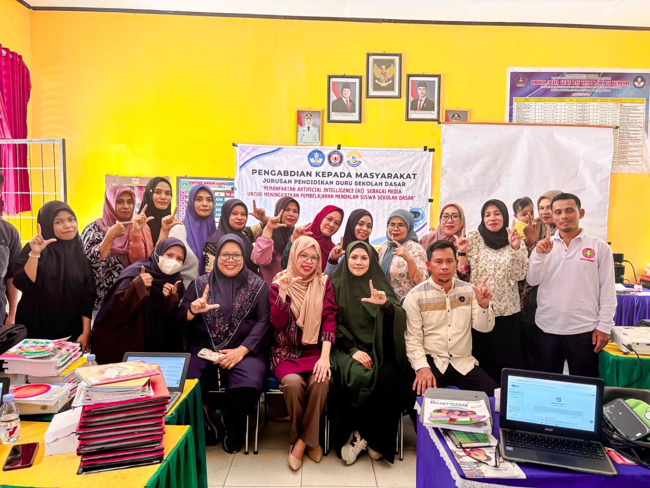 Tim Pengabdian PGSD UHO saat memberikan materi tentang AI Magic School kepada para tenaga pendidik di SDN 12 Kendari.